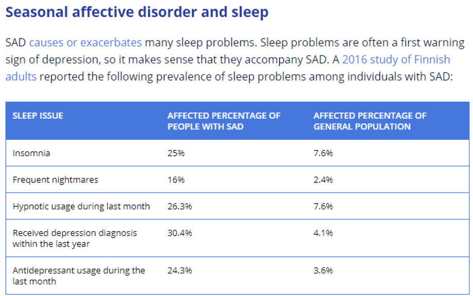 Speaking of sleep efficiency, people with SAD spend a lot of time in their beds, causing many to mistakenly that